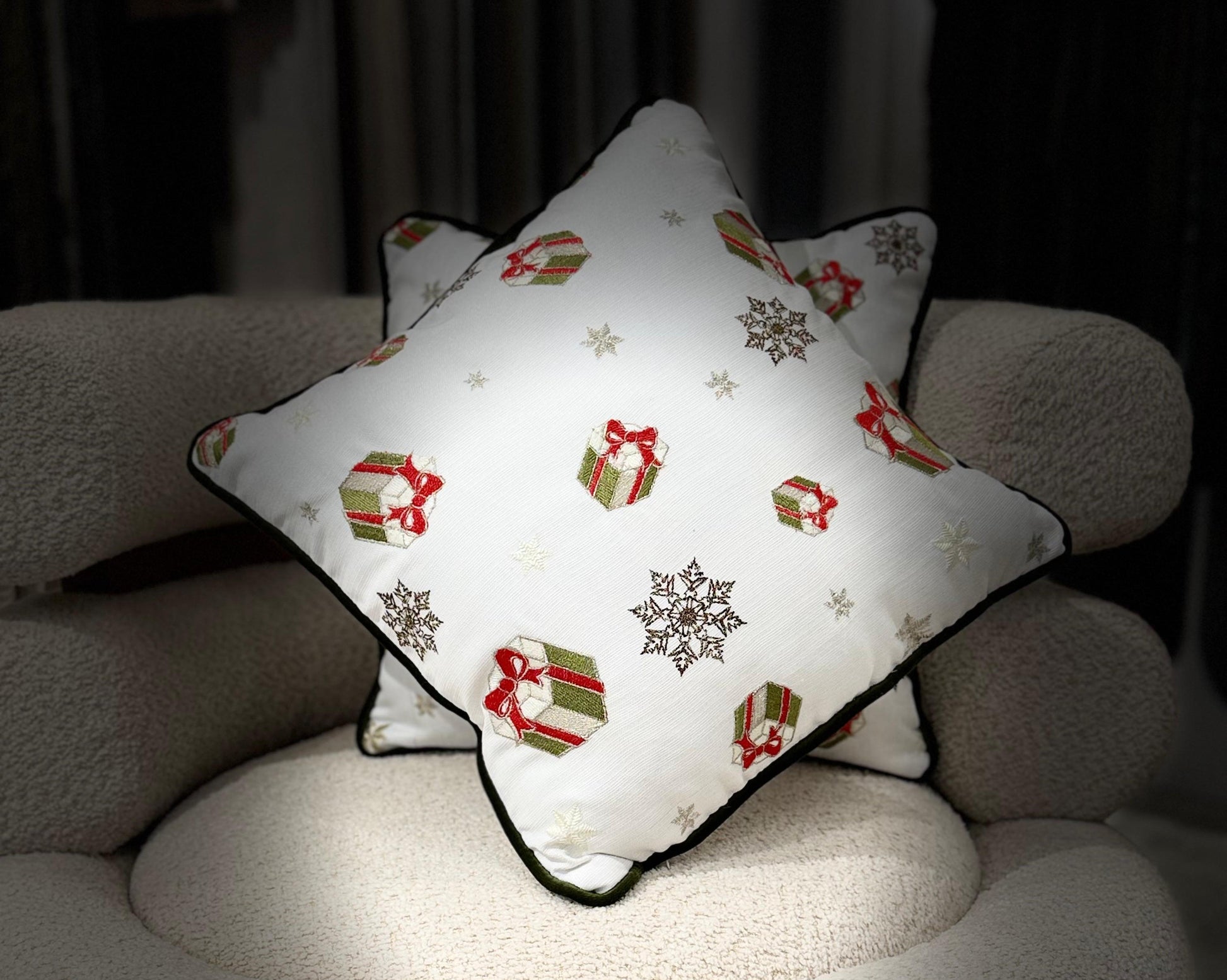Festive, artfully designed Christmas motif that transforms any table or sofa into a warm holiday setting.